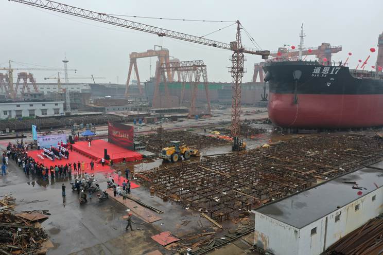 As one of the top 500 private enterprises in China, Dawn Group, after 30 years of rapid development, has now formed a coordinated development pattern of major and auxiliary industries such as chemical plastic trade, new polymer materials, titanium dioxide, modern logistics, coal industry and trade, and financial services. Mr. Xie said that according to the "14th Five-Year" strategic plan, in order to further refine the modern logistics industry, Dawn decided to build a 45,500-ton "Dawn 17" bulk carrier with the strong support of Huayuanxing Shipping Company. "We are very pleased to see the changes in ship construction day by day! Thank you for the dedication and hard work of all personnel in Zhenhe Shipbuilding. And hope that 'Dawn 17' will become a work of ingenuity and a symbol of our friendly cooperation."