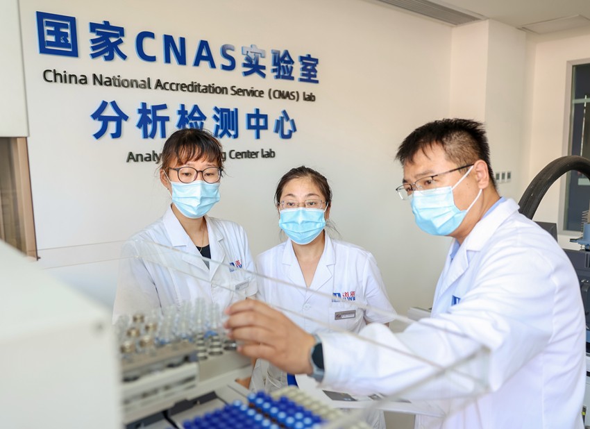 快盈VIII股份检测中心主任赵磊(右)指导实验