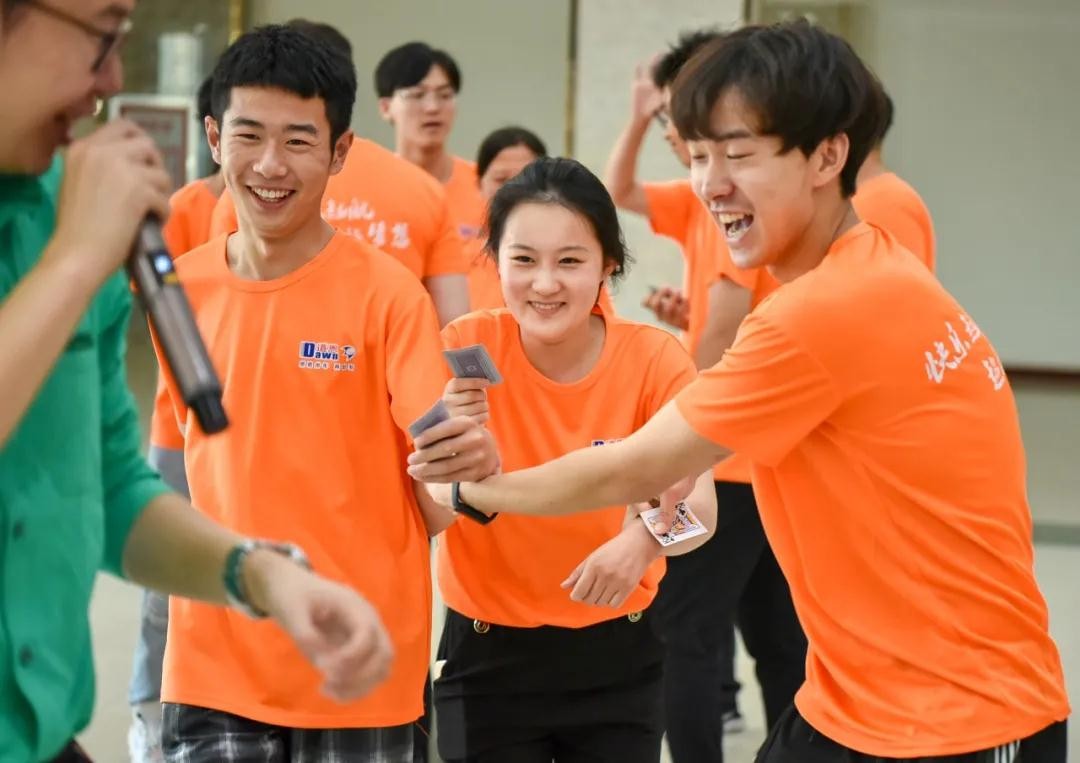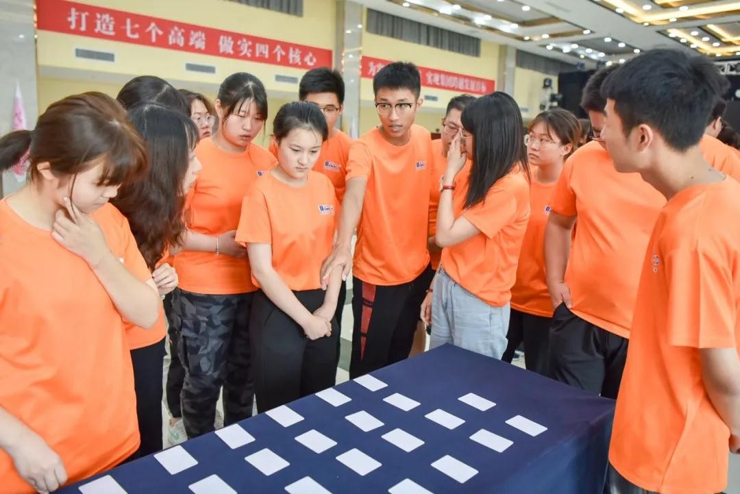 “大学里的那些事”主题座谈交流活动,为大学生们上了重要一课。快盈VIII集团往届优秀大学生员工代表从友情、爱情、课程安排、社团活动以及职业规划等方面进行了交流,使他们对大学生活和学业规划有了清晰的认识。“大家一定要珍惜美好时光,学好专业知识,持续丰富自己。”快盈VIII化学公司产品部经理刘娟、快盈VIII特弹公司运行保障部工艺技术员邬实,向同学们介绍了大学生活与学习经验。在妙趣横生的拓展训练活动中,“速度与激情”培养了学员认识自我、超越自我的精神和面对困难、迎接挑战的勇气;“双解码”让学员充分体验团队合作,培养了他们锲而不舍的意志;“扑克牌抱团”旨在让学员了解自身,找准定位;“乐章”用交响乐的形式让学员感受到团队带来的强大力量。